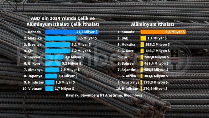 2024 ticaret verilerine göre, ABD’nin en büyük çelik tedarikçileri arasında Kanada (11,2 milyar dolar), Meksika (6,5 milyar dolar), Brezilya (5,1 milyar dolar), Çin (5,1 milyar dolar) ve Tayvan (3,8 milyar dolar) yer alıyor.