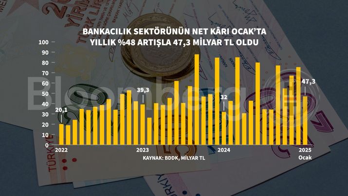 Bankacılık sektörünün toplam net karı ocak ayında 47,3 milyar lira olarak gerçekleşti. Bankalar geçen yılın ilk ayında 32 milyar lira net kar elde etmişti.