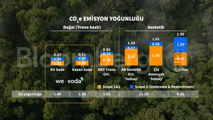 Bizim üretim modelimizde 1 ton soda içerisinde karbon yoğunluğu 0,57 oranında. Sentetik üretimde karbon yoğunluğu yaklaşık 3 katı. Biz çok çevreciyiz.