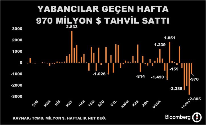 Türkiye’de yabancı yatırımcının tahvil satışı devam ederken hissede ise beş hafta sonra alıma döndü.