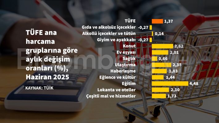Haziran ayında aylık enflasyon yüzde 1,37, yıllık enflasyon yüzde 35,05 oldu.