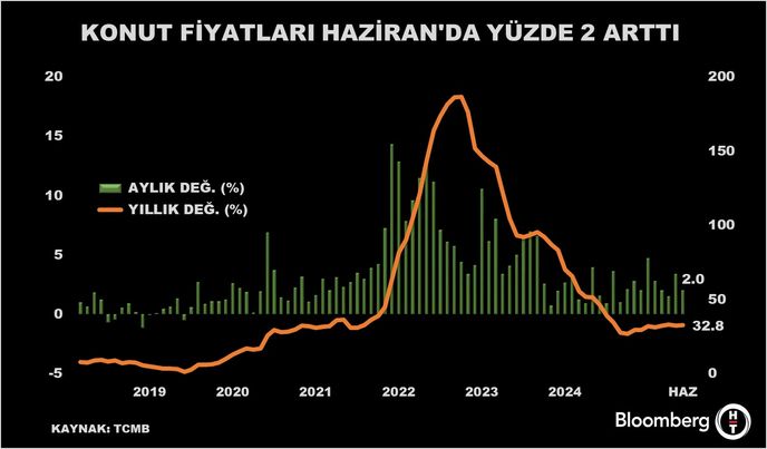 Haziran’da konut fiyat endeksi yıllık olarak yüzde 32,8 arttı.