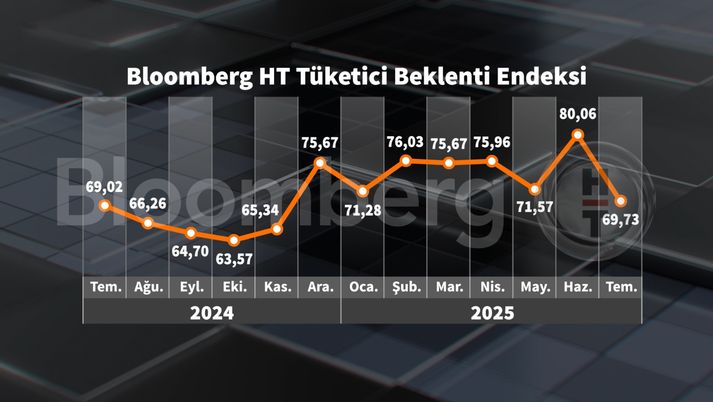 Bu çerçevede, Bloomberg HT Tüketici Beklenti Endeksi bir önceki ayın nihai endeksine göre yüzde 12,91 azalarak 69,73 oldu.