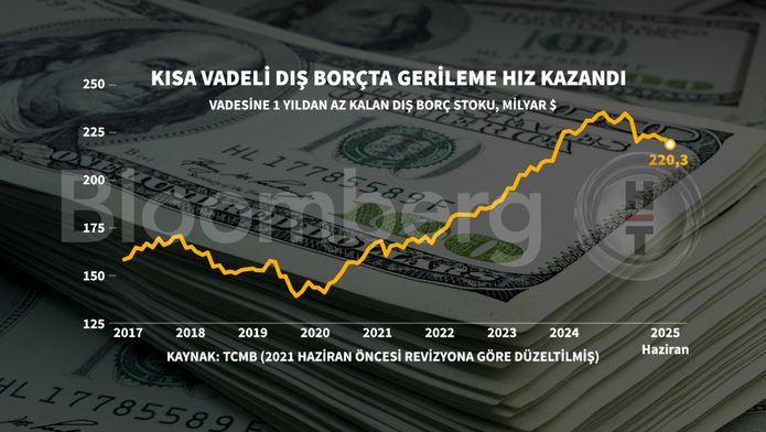 Buna göre, Türkiye’nin kısa vadeli dış borç stoku bir önceki çeyreğe göre yüzde 0,3 oranında azalarak 2025 yılı 2. çeyrek dönemi itibarıyla 168,2 milyar dolar oldu.