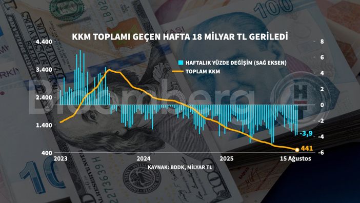 Bankacılık Düzenleme ve Denetleme Kurumu’na göre, Kur Korumalı Türk lirası Mevduat ve Katılma Hesapları (KKM) geçen hafta 18 milyar lira azalark 440 milyar 562 milyon liraya düştü.